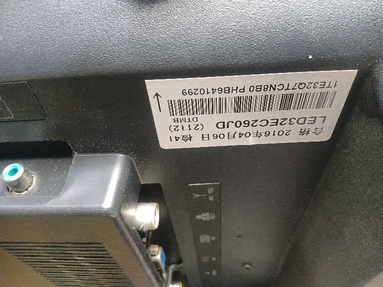先查看电视背面的白色条码!