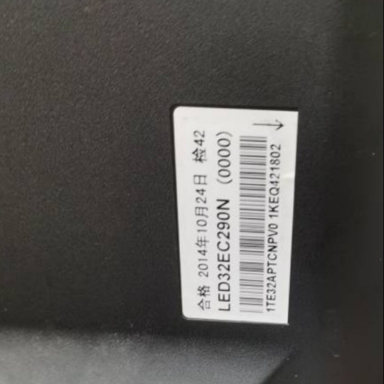 先查看电视背面的白色条码!