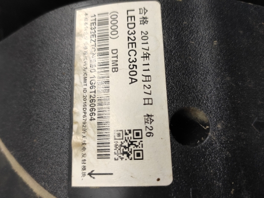 先查看电视背面的白色条码!