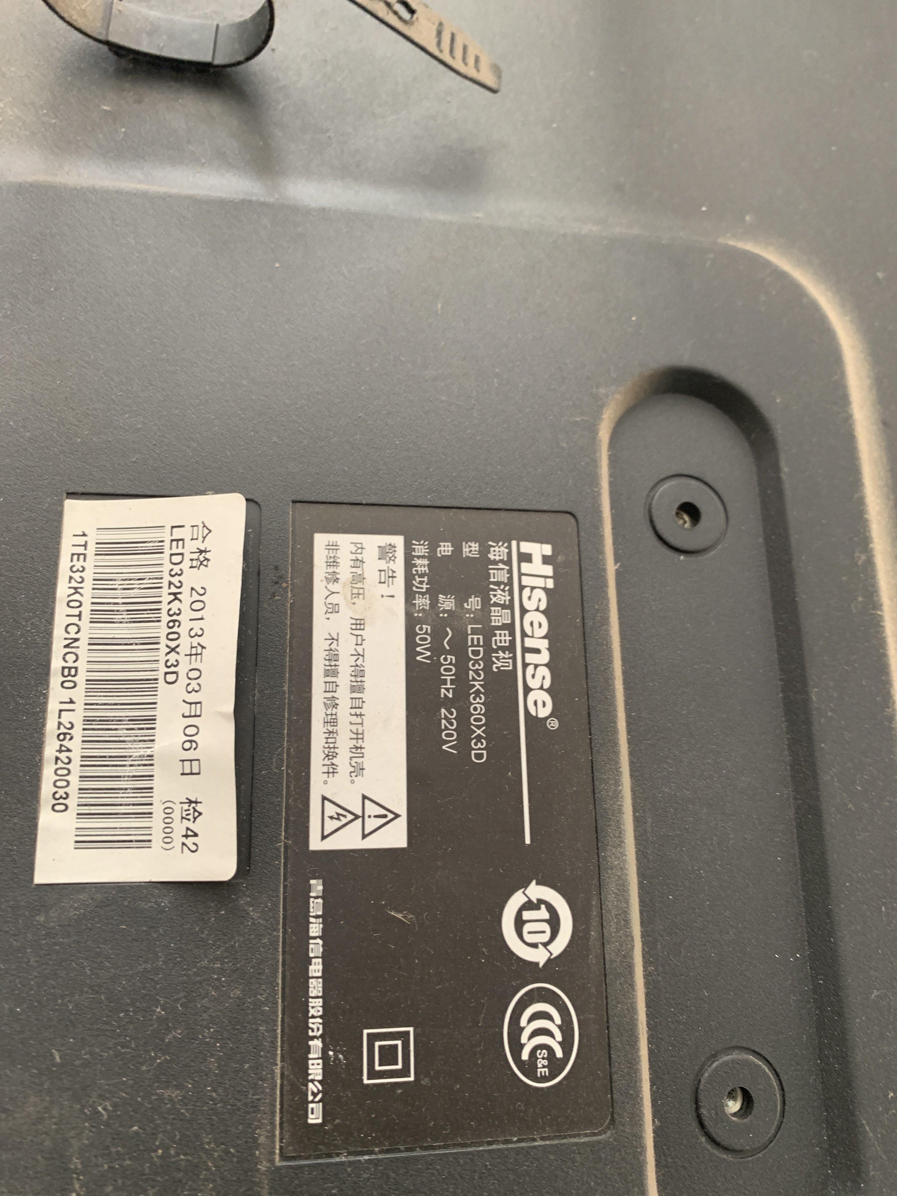 先查看电视背面的白色条码!