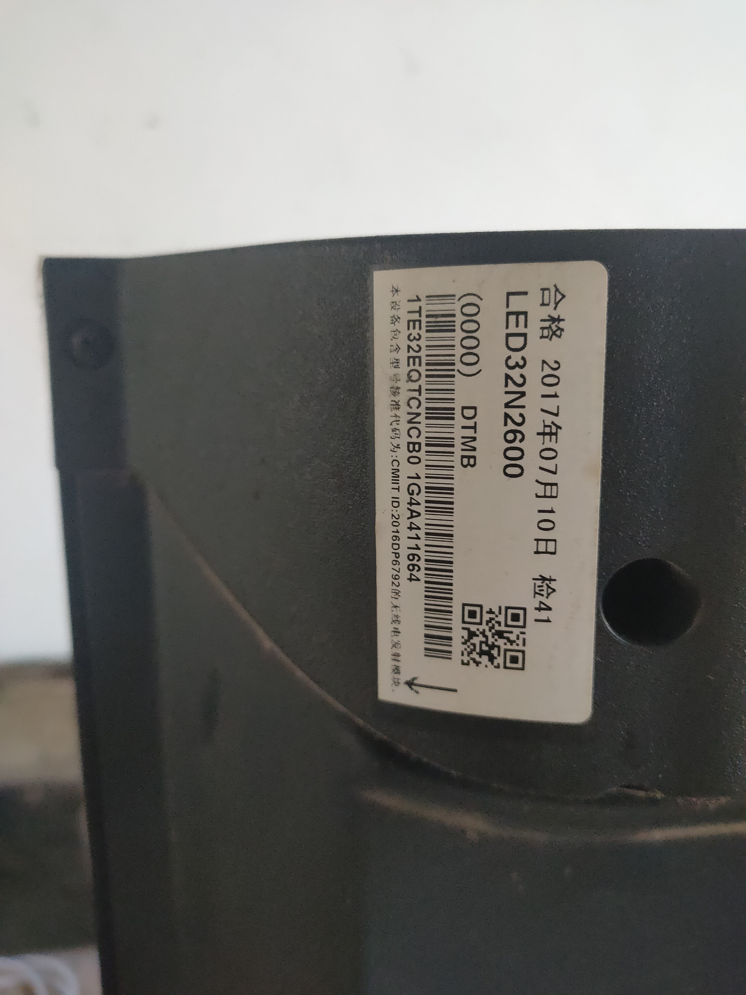先查看电视背面的白色条码!