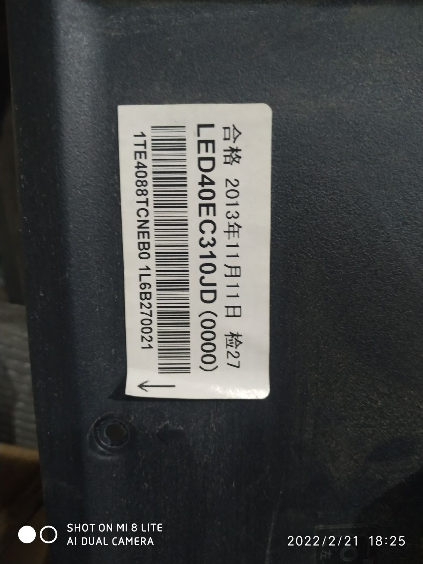 先查看电视背面的白色条码!