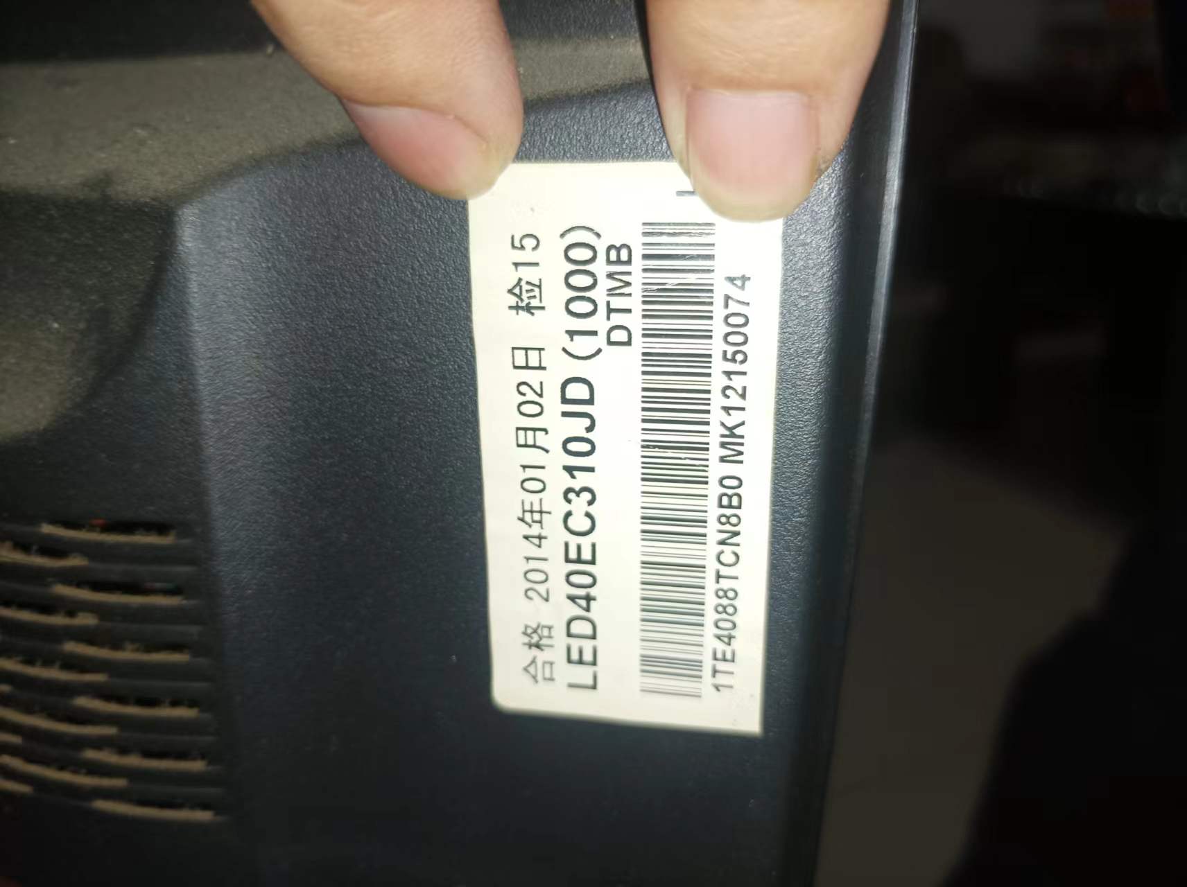 先查看电视背面的白色条码!